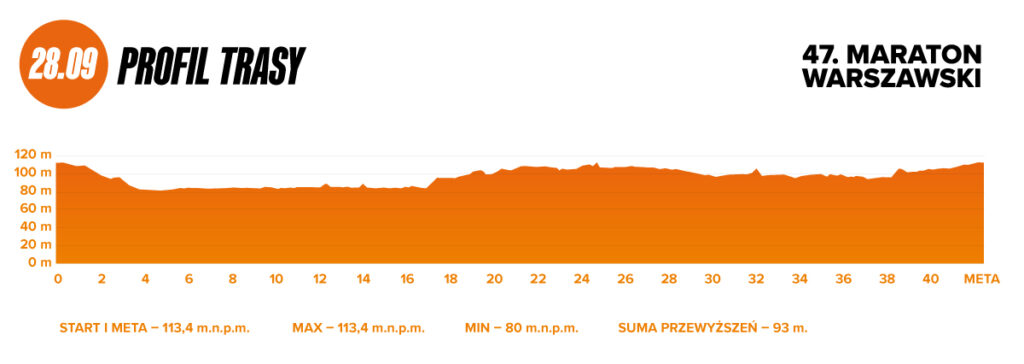 Trasa powstała w oparciu o zeszłoroczną, która przypadła Wam do gustu! Została delikatnie zoptymalizowana – zerknijcie na grafikę! Długość? Oczywiście 42,195 km – z atestem PZLA i World Athletics. Profil? Poniżej!