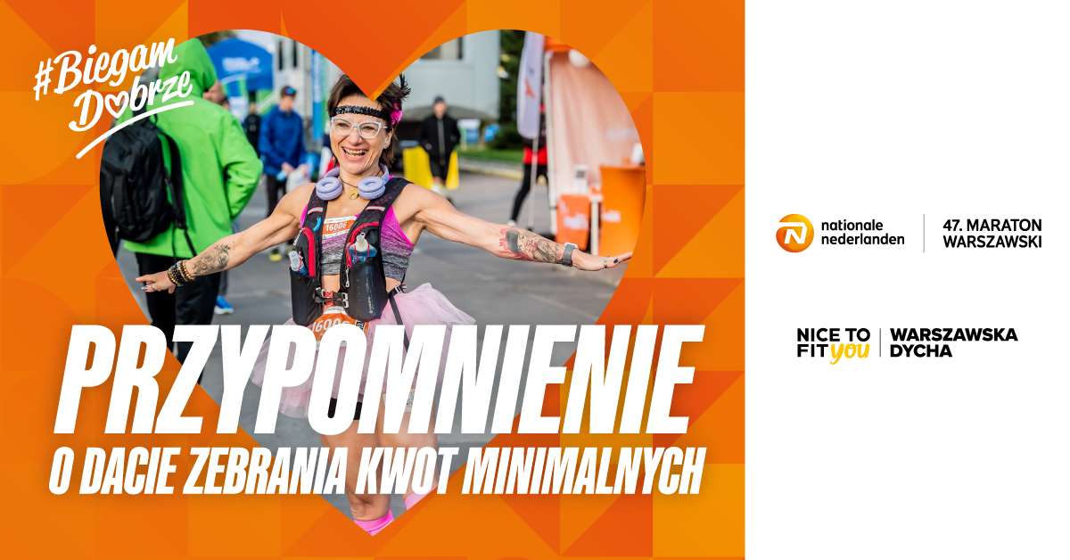 Jeśli jeszcze nie zapisałeś się do udziału 47. Nationale-Nederlanden Maratonie Warszawskim lub Nice To Fit You Warszawskiej Dysze, nadal możesz to zrobić w formule charytatywnej. Wystarczy wybrać organizację, założyć własną zbiórkę, uzbierać kwotę minimalną i dołączyć do grona biegaczy, którzy razem tworzą wyjątkową społeczność #BiegamDobrze.
