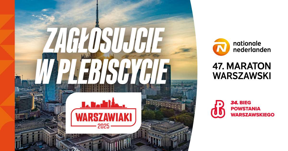 Ruszyło głosowanie finałowe w 9. edycji Plebiscytu na „najlepsze w Warszawie”! Mieszkańcy wybierają zwycięzców w 12 kategoriach, a my jesteśmy w finalne jednej z nich – SPORT. Na liście są aż dwie nasze imprezy: 47. Nationale-Nederlanden Maraton Warszawski i 33. Bieg Powstania Warszawskiego. Głosować można codziennie do 3 marca na stronie Plebiscytu.